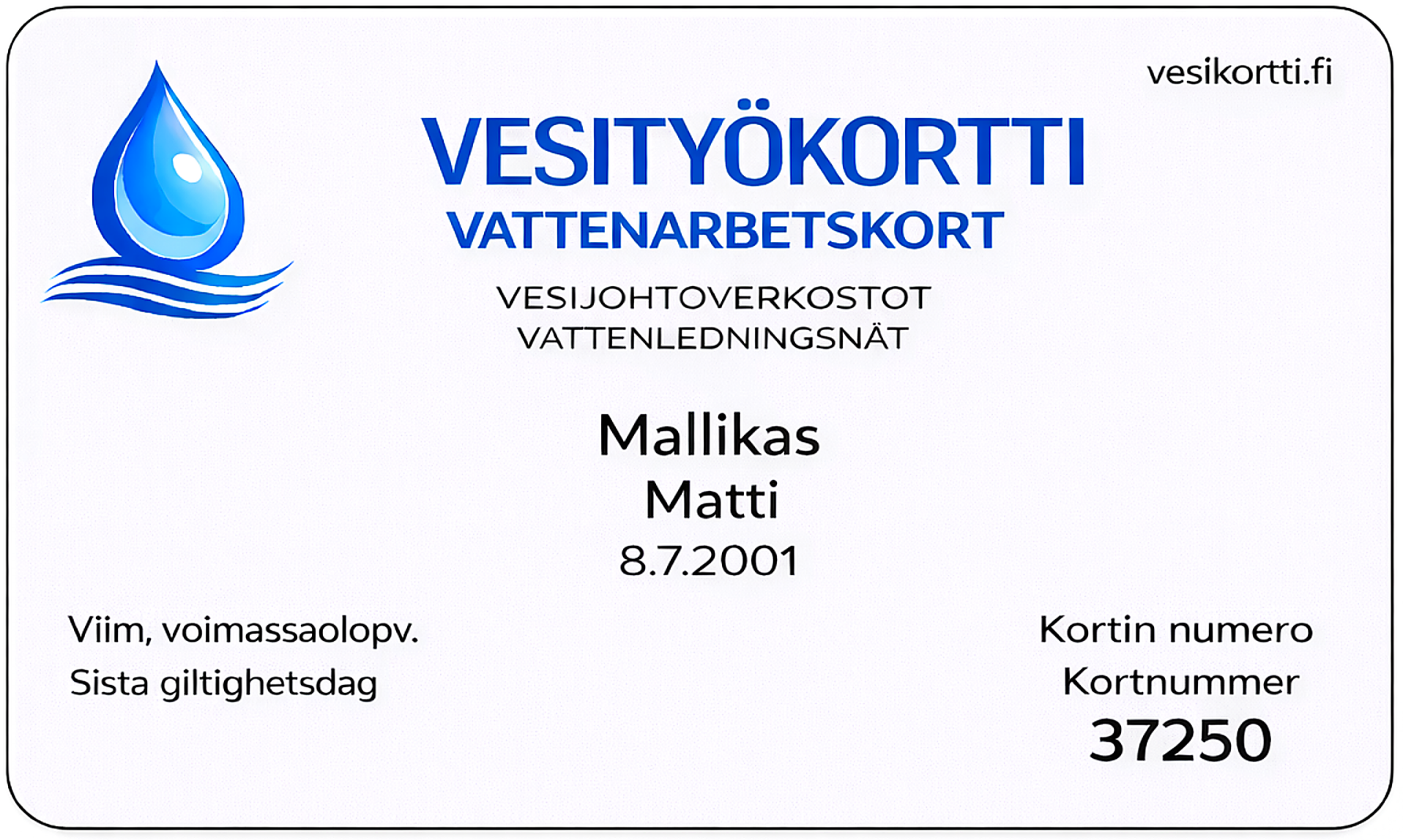 Vesityökortti on virallinen todistus henkilön osaamisesta vesihygienian ja talousveden turvallisuuden parissa.